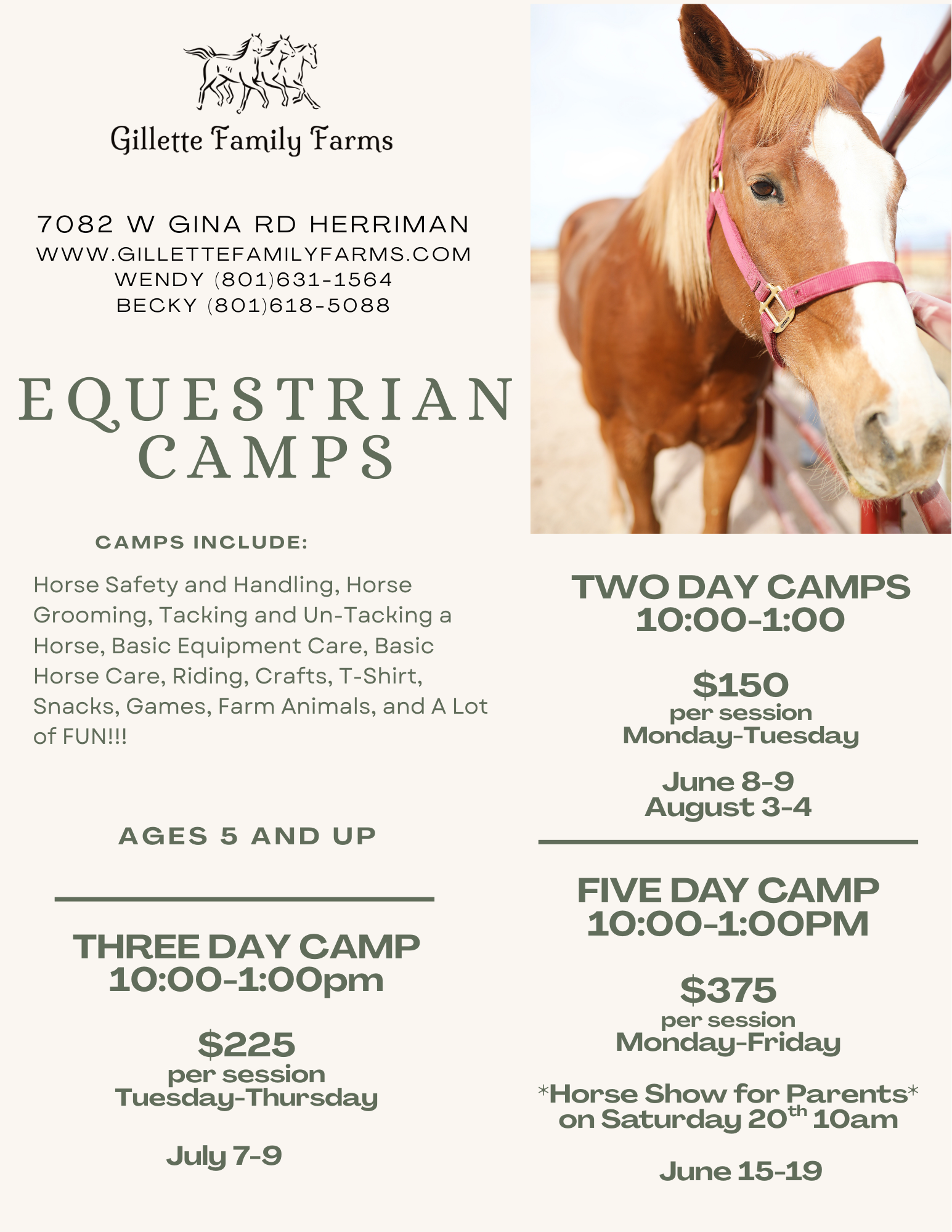 2 Day Horse Camp August 3rd and 4th, 2026